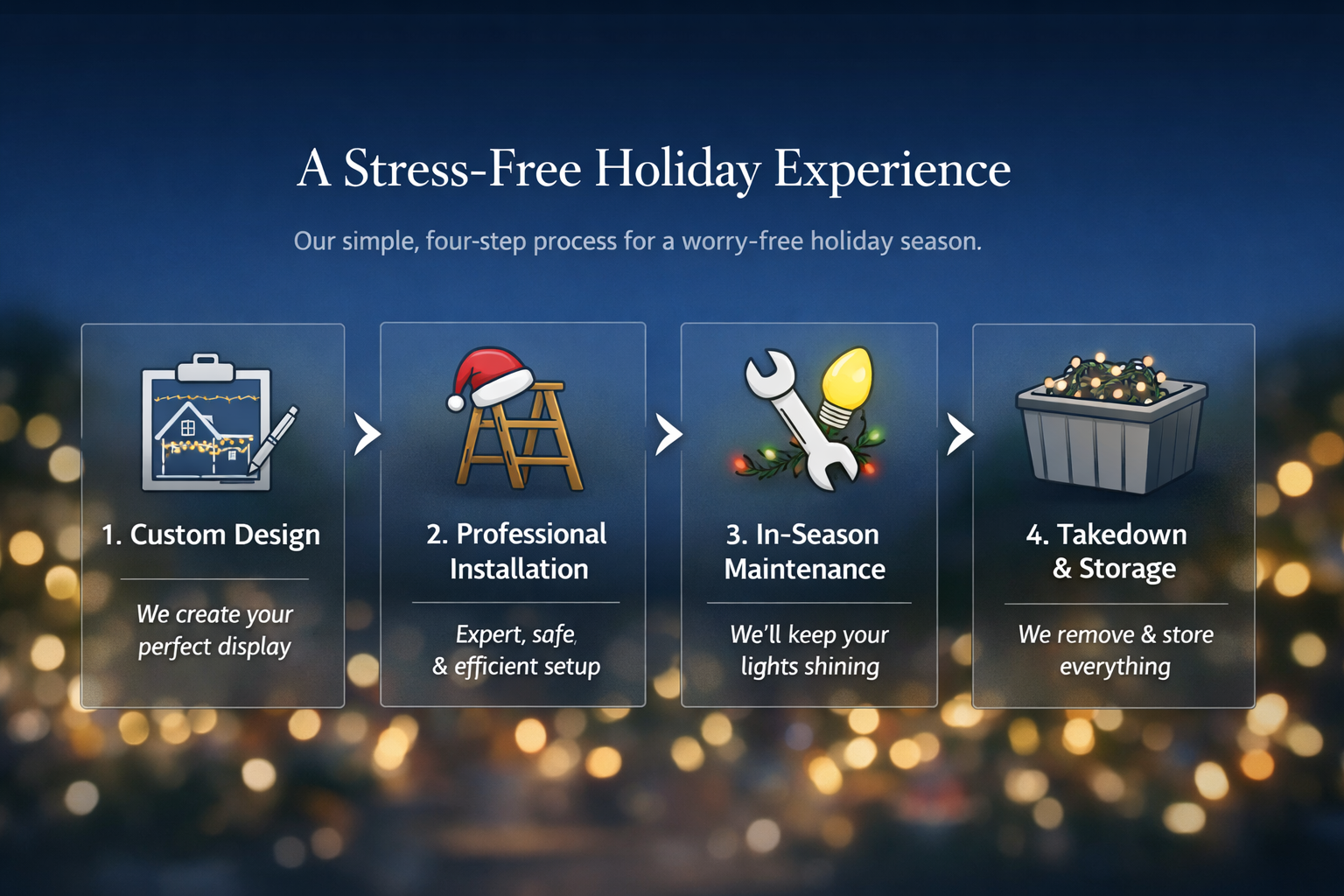 We remove and store your lights so you don’t have to lift a finger.