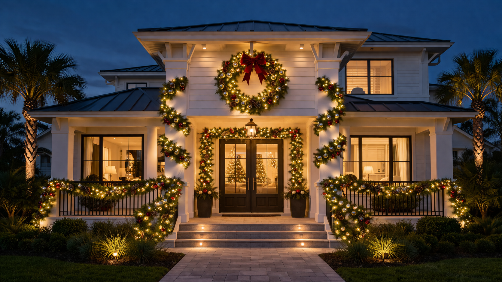 At First Coast Christmas Lights, we install professionally styled greenery and lighting that complements your homeβs architectureβdesigned with balance, precision, and a clean, intentional finish.